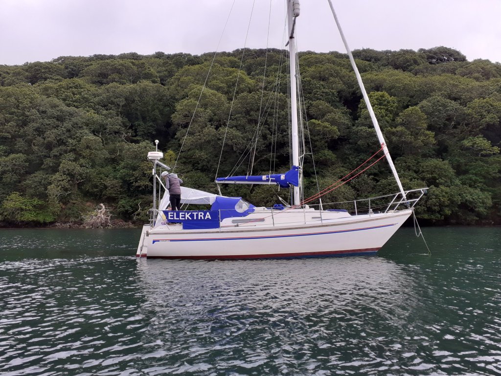 From the middle of September to the end of February it had rained nearly non-stop, Elektra was looking very green in January.Early in February I scrubbed her bottom before she was pulled out for work ashoreEnd of Febuary Elektra being pulled out for work ashoreOut with the 36 year old Buhk DV20 in early MarchNew Yanmar 3YM20 fitted by local engineer in early March while I got on with other winter jobsElektra on a gale proof mooring though lockdown in April with no place to go!Into May Elektra was ready but still not allowed to go sailing Early June, Elektra is having cockpit enclosure patterned Late June, Elektra gets out to her seasonal mooring July first sailing August, social distancing holiday September another holiday aboard, Elektra seen here in LooeOctober back onto her gale proof mooring in Carne creek November Elektra is pulled out for the winter to do jobs ashore just before 2nd lockdown December ashore ready to start work