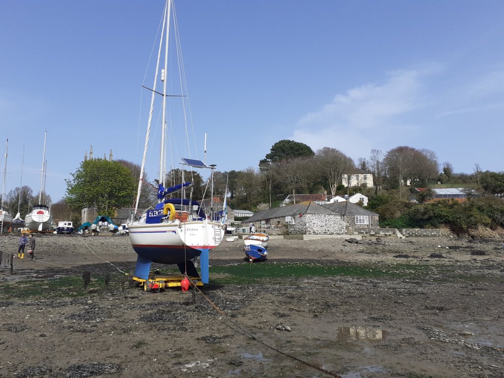 We had been given 29th March for Elektra’s launch day, I had to work but had gone to St Anthony with our punt before work. Anthony the yards boss came over to talk, it seemed his tractor driver was off until the 31st, so our date was pushed on a little. I wasn’t worried, would allow me to get on with my work. After work I had a buzz around Gillan Harbour in the punt to check the outboard was working well, it was nice to be on the water even in the punt.