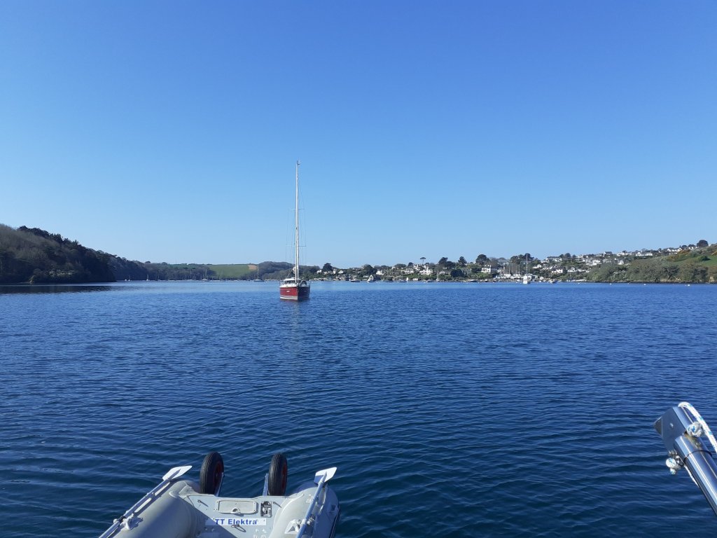 Easterly force 4-5 and cold with it, we sailed across the bay at 4-6kts SOG. It was nice to be sailing but with it being so cold we were glad to get to St Mawes and start motoring up the river. At 1030hrs we dropped anchor and got the cockpit enclosure out and put it up. Vicki cooked brunch and the temperature of the enclosure started to rise, getting to 30c before we had to vent a little heat.