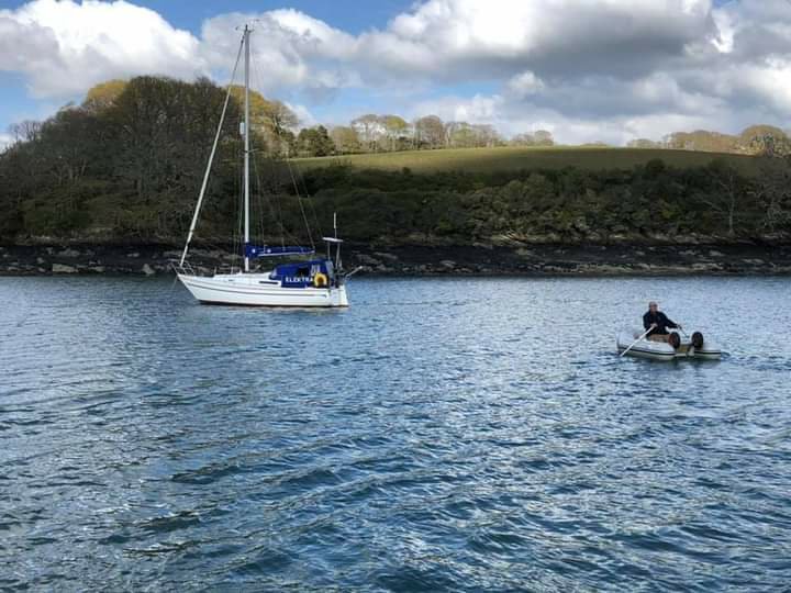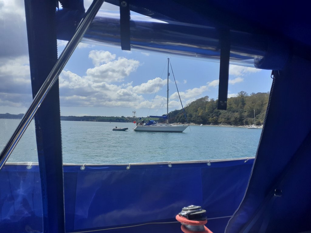Saturday was a rest day, late getting out followed by a fry up and washing up. I was sitting in the cockpit enclosure looking around and spotted a Sadler heading our way. It was Robert and Mandy in their Sadler 34. They dropped anchor beside us and l rowed over for a chat. Invited aboard for a cup of tea and a lovely long chat before l said l must go to let them go up river to anchor.