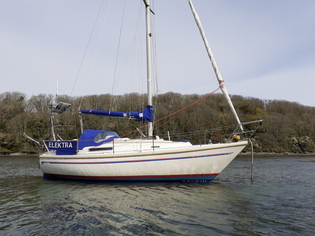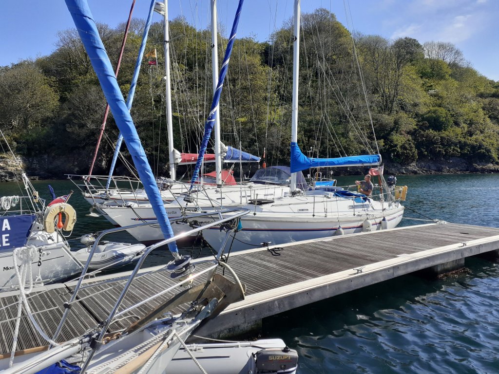 Vicki motored Elektra out of Fowey while I stowed the fenders and lines, once out of the entrance I set just the genoa as this sail is 3/4 of her sail area and her power. To start with we sailed off at about 5kts but then after Cannis the wind died away and we had to motor, then a few miles short of Yaw buoy the wind picked up again. It was a nasty 3/4 following sea of 3-4ft and the wind started to pick up as we reached the Dodman Point, now doing over 7kts SOG. Once past the Dodman the wind seemed to pick up a bit more and the sea with it to 4-5ft, Vicki dosen’t like this sort of sea so I stayed on the helm for the whole passage. We had a few near broch’s and in the end a real one but all was well with no damage I got Elektra back in line. Off the Roseland just before we started to cross Falmouth Bay the wind died away so we had to motor, the swell was just as big but the white horses were gone. After a uncomfortable passage across Falmouth Bay we motored into Gillan Harbour at 1900hrs having logged 24nm.