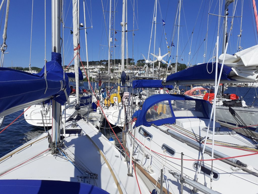 On Sunday the forecast was redued from easterly force 4 gusting 6 to easterly force 4 gusting 5. Lots of Sadler’s left early to head back to Plymouth area, the tide wasn’t going our way until 1230hrs but we needed a tide hight of 4m to get Elektra into Carne Creek and on to her gale proof mooring since we were heading for a lea shore with strong easterlies forecasted for the coming week. So we delayed our departue until 1430hrs as the tide would only be over 4m after 1900hrs.
