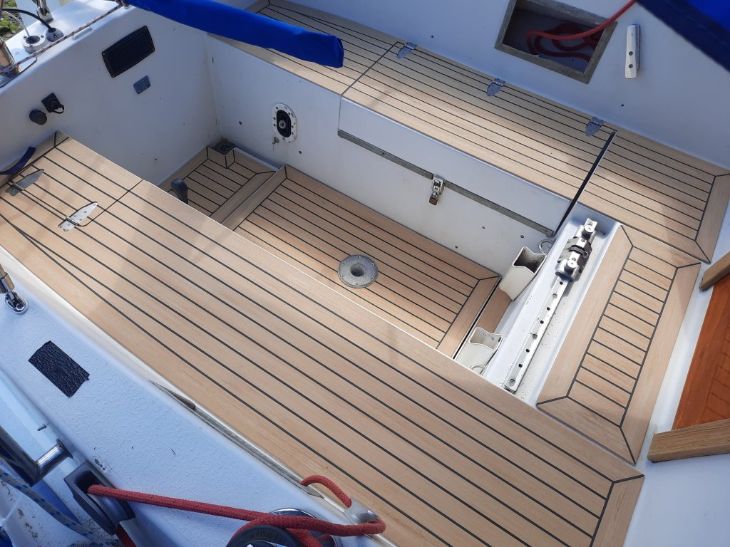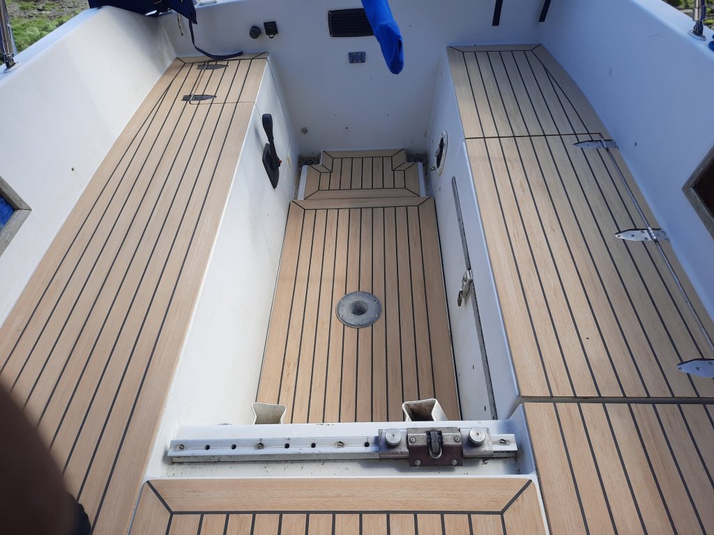 On Friday at HW Vicki and I moved Elektra back to her swing mooring, the flexiteek needs 24hrs for the glue to set properly and the advice is to keep off it for three days, this left us unable to use her over the weekend. The advise was to place plywood on top to walk on for the three days.