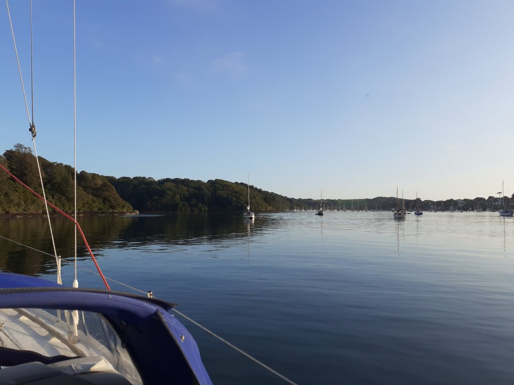 There was no hurry to get back, the forecast for the coming week was easterly so we needed to moor Elektra on her gale proof mooring in Carne Creek, we need the a tide height of over 4m to get her in and out of there. The tide would be high enough by 1630hrs. Another brunch and washing up followed by a few hours reading in the cockpit.