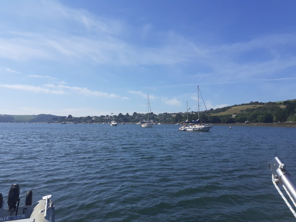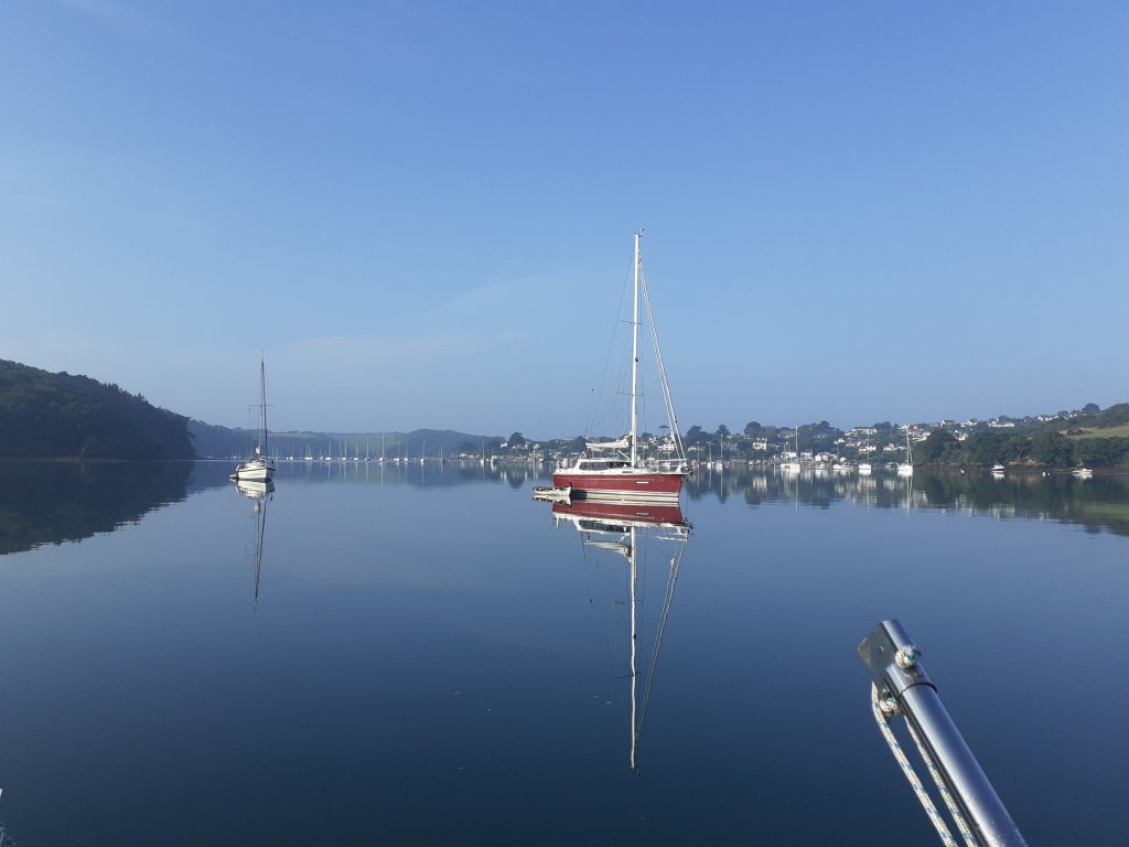 On Monday 6th of September the sun came out and we awoke to a glass like calm. Enjoying a little more cockpit time in the morning before taking the dinghy down river to St Mawes for shopping from the co-op and a pub lunch in the “Rising Sun” our 3rd pub lunch since February 2020!