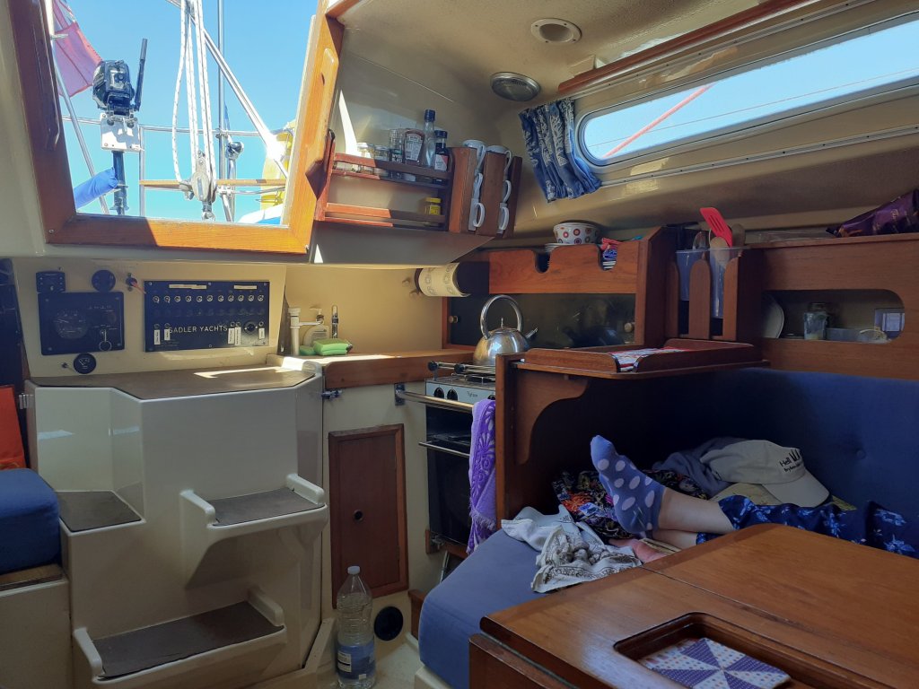 Elektra our Sadler 29 which was designed in the early 80s and built/sold as a 6 berth! Will there are 6 berths so all could lie down to sleep as long as they didn’t any stuff with them. Vicki and I normally as just 2 and use almost all locker space, we have as 3 a few times which works quite well. With anymore than 3, there wouldn’t be enough locker space for living aboard.