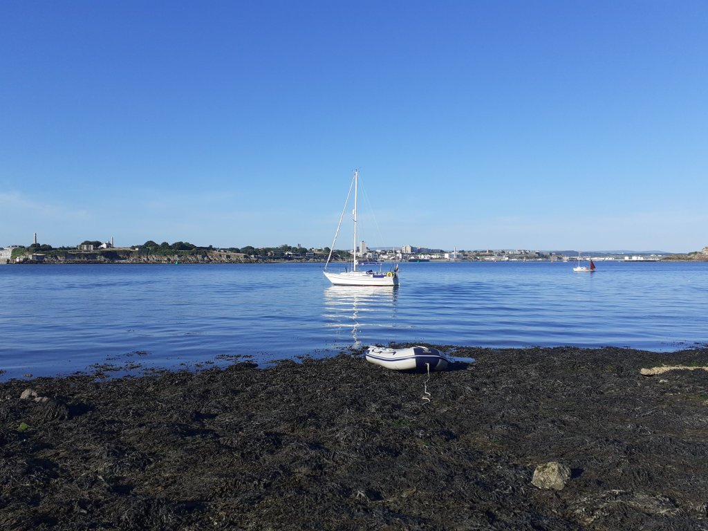 Now to find an anchorage, Cawsand which we had used before wasn’t looking a good option with the east winds so we headed for Jenny Cliff which we hadn’t ever used but had heard was good for east winds. Once there the wind seemed more like south-southwesterly so not sheltered. Then without stopping we motored over to Barn Pool west of Drake’s Island which we found very calm, there were a few yachts at anchor already. We hadn’t used Barn Pool before but new from friends of its problems, lots of discarded metal on bottom and steep shelving banks which go from 0-28meters of depth in the same sort of distance. So we took care to find a good spot before dropping anchor at 1600hrs having logged 29nm.