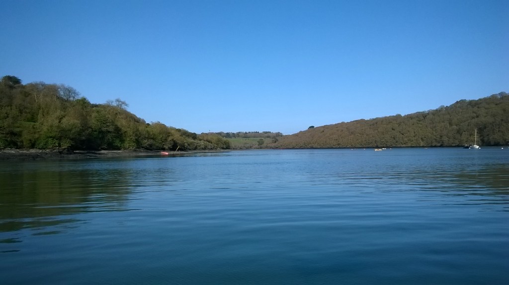 Our first tack was almost due east, when we tacked we went northwest! Before tacking again in a northeast direction, now the wind had shifted and was blowing from the north. That tack took us over to St Anthony lighthouse before we tacked again towards Pendennis Point. The next tack was northeast towards St Mawes Castle. The west to Falmouth Harbour breakwater. Next tack was right into St Just in Roseland, just south of the moorings we tacked and headed over to Mylor. We almost made it past north of Mylor moorings but had to tack again, this time over to the west shore again about a 1.5nm north of St Just at which point we started the engine and motored around Turnaware buoy and up the Fal River and dropped anchor in good shelter off Cowslands Creek having logged 13.5nm in 2.75hrs