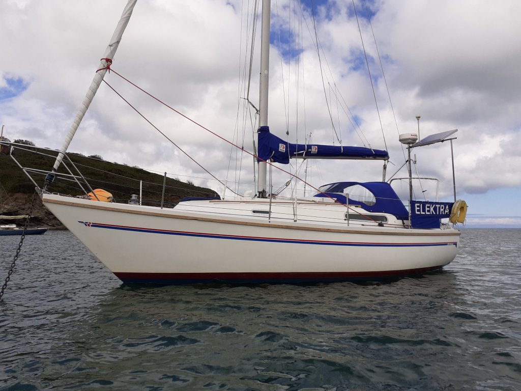 It was Friday 23rd before we got out for another sail. We couldn’t get aboard 1330hrs due to the tide. The weather forecast was for northerly force4 gusting 5. Elektra was bucking up and down on her mooring when we arrived out to her which meant difficulties getting the outboard off punt and aboard Elektra and also the punt onto it’s davits. Once done we didn’t want to stay there long and cast off at 1500hrs with 2 reefs in mainsail we motored out and set half the genoa before stopping engine. We were heading north into wind. The conditions always look worse heading into wind but by the way Elektra was handling we felt sure the wind was north east force5 gusting 6.