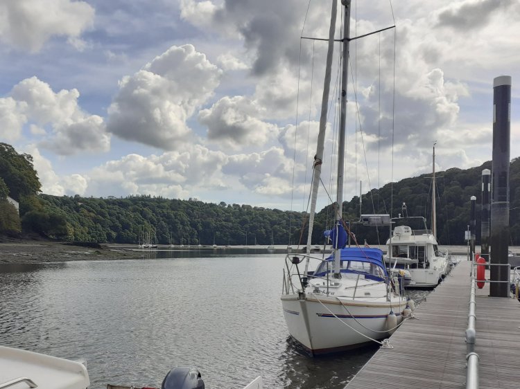 There wasn’t any hurry to leave Malpus, with the low water being at 1216hrs and the sounder showing 0, we waited until 1320hrs before casting off. The sounder was still showing 0 but Elektra didn’t ground leaving the pontoon. Vicki motored Elektra slowly out and back down the Truro River with very little showing under her keel while I coiled lines and stowed fenders.