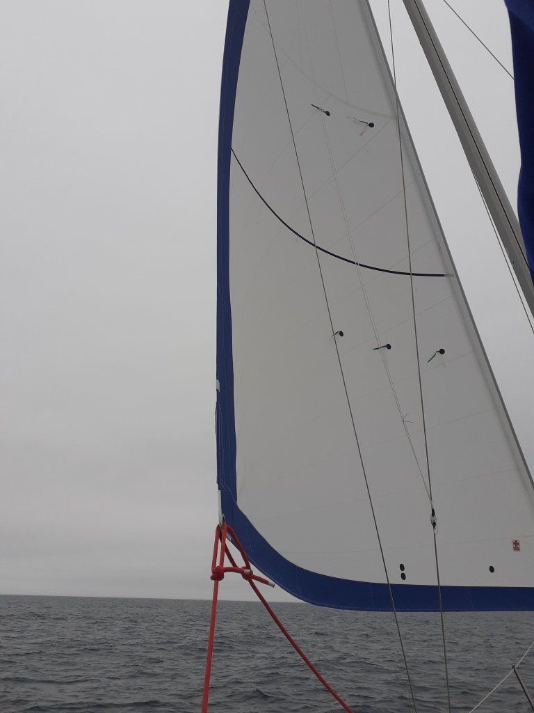 Elektra was logging between 3.5 – 4.5kts, she would have been a lot faster with the mainsail but l didn’t need to be going fast to check out the systems. The weather was misty, with visibility around 3 miles. The new 140% genoa was set nice and noticeably smaller than our old 150% sail, but l liked the cut proving better forward visibility. I continued to sail east for an hour before going about and heading back. I needed to get back to Gillan before 1530hrs so l could put Elektra on her gale proof mooring in Carne Creek.