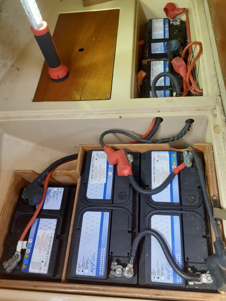 Then l started on replacing the batteries. Not too much of a problem you would think but 3x 75ah and 2x 110ah batteries loaded into pick up, out of pick up into dinghy, out of dinghy into Elektra cockpit and from the cockpit into the cabin, few! You would think that was the worst of it but l still had to exchange the batteries and reverse the process with the old batteries! Better workout than any gym could provide!