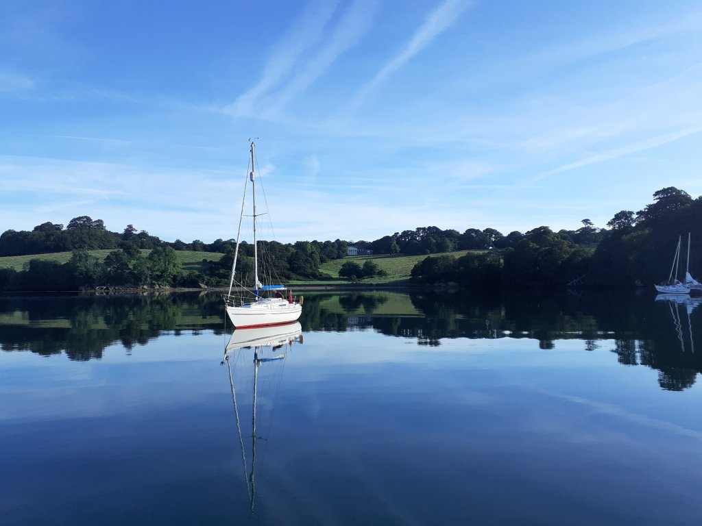 On Saturday, we stayed for low water because l wanted to check the prop for rope or seaweed? There wasn’t any! But once floating again and outboard and dinghy lifted onto Elektra. Vicki motored Elektra out and we headed for Gillan at 1700hrs, there was a nice bit of wind in Falmouth Bay, so just on Elektra’s genoa she punched forward into a southwest force 4-5 getting into Gillan at 1915hrs having logged 10.5nm. We stayed aboard that evening and packed up in the morning to get ashore before 1130hrs due to falling tide.