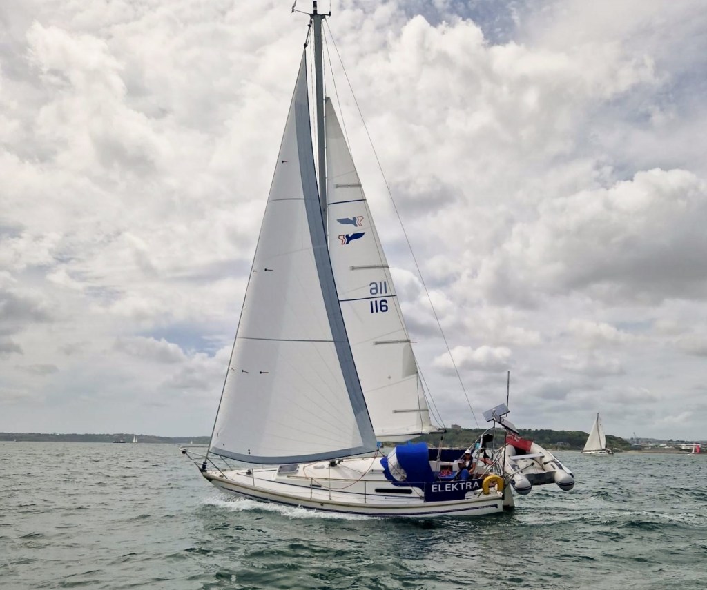 In September 2005 we bought a fin keel Hurley 22 which had a road trailer from Emsworth called “Gala”, I towed her home to Cornwall which took 11hrs as she was very heavy for her size. I did an RYA day skipper and RYA DFC Radio courses over the following winter. “Gala” was a proper little sailing yacht, built like a brick shit house, she was very stiff and needed the top end of a force 5 before thinking of reefing. We cruised her between Dartmouth to the east and Scilly in the west, she took us safely to and from Scilly 3 times over the 11 seasons we owned her and we logged over 5000nm, only the limits of my job had stopped us from going further (I only had a max of 9 days before I needed to return to work) We had been looking to buy a bigger yacht for a few years but it took a while to find the right one. I sold “Gala” in July 2017 and she went to South Wales on the back of a low loader.