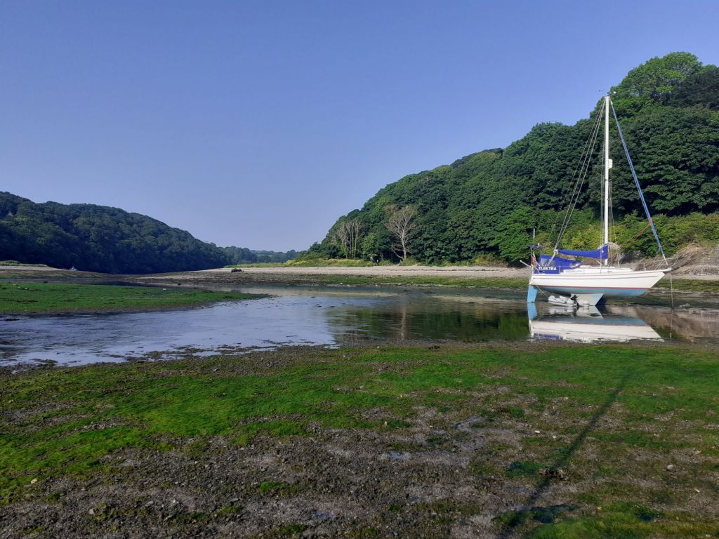 I awoke suddenly at 0500hrs on Friday and thought, l might as well leave with the tide since l was awake. So l got out and made Elektra ready to leave, the tide was with us from 0352-0952hrs. I cast off the mooring at 0600hrs and pointed Elektra towards the sea, l unwrapped the mainsail and motored out the entrance but just set the genoa on coarse for Cannis Buoy. Elektra was only logging 3.5kts to the Buoy, but as we left the shelter of Gribbon Head things soon hotted up! With the need to help the tiller pilot keep Elektra on coarse, l need to reef the genoa once, then twice! Elektra was on a broad reach to the Dodman and then a beam reach from Dodman to Gillan, with just a piece of genoa she was logging over 6kts most of the time! The slow parts of the passage was from the mooring to Cannis Buoy and crossing Falmouth Bay at the end of the passage, over the last hour when the wind eased and l should have let more sail out. The fastest speed recorded on the GPS was 7.5kts. Elektra had covered the 22nm from Cannis Buoy to Gillan in 4hrs. And the whole passage from the Fowey mooring to anchored in Gillan, 24nm in 4.5hrs.