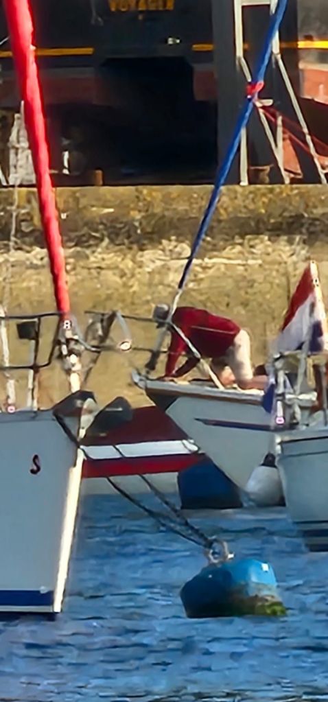 From the Dodman l should have shaken out the reef in the mainsail but l am a cautious sailor, normally to little sail than too much! But this slowed Elektra’s progress. And we arrived in Fowey entrance 5hrs after leaving Gillan having logged 23nm, l rolled away the genoa and pulled down the main as Vicki motored Elektra into Fowey, we picked up a swing mooring.