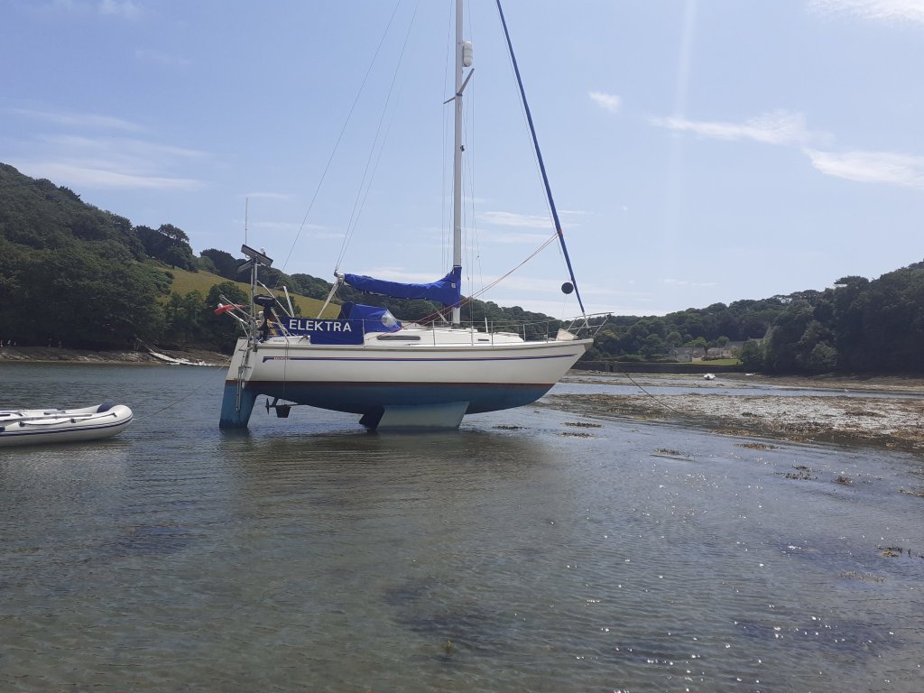 By the weekend we had decided to stay local and join the rally on the Fal River Friday evening and Saturday, if the members managed to beat their way west to Falmouth. On Friday we sailed across Falmouth Bay, in past St Mawes and anchored at Place, just 5.5nm from Gillan for the strong southwest winds forecasted for Saturday. Here Elektra will dry out and l planned to scrub her bottom on Saturday. Later in the day l had a phone call from my doctor about my leg pain. The doctor explained the problem with my back causing nerve damage in my leg and the best they could do for now was to manage the pain. The doctor booked me an appointment to see the physio.