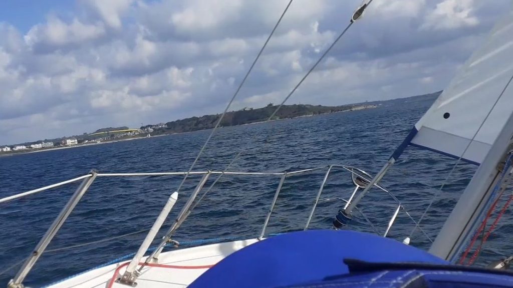 So, I set about getting ready to leave, got the cockpit custions out and the tiller pilot ready. The forecast said NW4-5 becoming W4, I filled out a log sheet ready, uncovered the mainsail, attached the dinghy painter to the mooring, fitted the bridge deck chart plotter, lifejacket on, jobs done, I was ready to let go. Standing on the bow I let a motorboat get into the moorings before I did so Elektra didn’t swing into her path with the wind blowing her east. By the time I got back to the cockpit Elektra had swung around about 120 degrees and was heading for sea on her own. I pulled out about a 3rd of the genoa to help her along and getting east to Carcroc Cardinal Buoy I gybed her around and let out all her genoa. Then heading north-northeast across Falmouth Bay towards Falmouth, Elektra sped up quickly to 5.5-6.1kts, it was great to be out sailing! The genoa alone as normal was plenty of sail for the amount of wind and too much sail for the tiller pilot to handle as Elektra started to round up. So I took over the helm to keep her on track and driving forward, I turned her about just before Black Rock and headed back in the oposit direction with a bigger yacht slightly in front on mailsail only, Elektra soon caught her up. Then a ship coming into Falmouth Bay with pilot escort boat crossed out track and so I altered to pass behind the ship. By the time we started crossing Helford River again the other yacht was quite a bit behind. Nearing Gillan I thought, I like the this and turned Elektra towards Falmouth again! Sailing halfway back to Falmouth for the 2nd time almost up the ship stern which had just anchored, just in time I noticed the bunkering tanker coming in from her aft to refuel the ship, to avoid any problems for her captain, I put Elektra about and headed in the oposit direction and away from the ship. From there I sailed Elektra back to Gillan, picking back up her mooring 2hrs after dropping having logged 11nm.