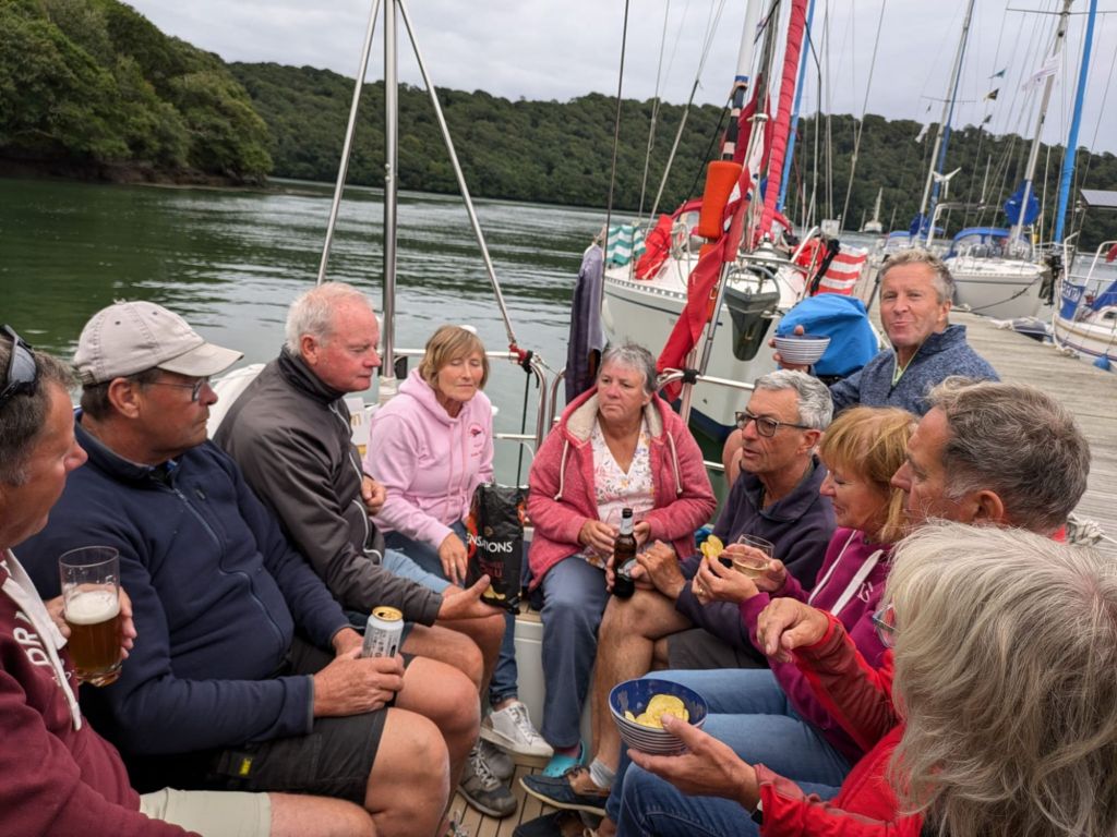 These sort of plans quite often dont work as intended but the basic idear came together. The members in Plymouth had a great socal in Sutton Marina on Wednesday followed by enjoying the fireworks from Plymouth Hoe. The next day came strong southwesterly winds and everyone stayed in Plymouth, followed on Friday with almost no wind. The members who headed west for the Fal River had to motor all the passage. And we did the same across Falmouth Bay, we could of sailed in the Carrick Roads but by that time I had packed the sails away, so we just continued to motor north. On the pontoon were already 2x S34s, SL39, 2x SL35s, Moody, our S29 and later arrived another SL39 and S32, in the early hours of the following morning arrived Peter in his S26 from Scilly. The evening followed with drinks and Chris had made chilli for everyone including vegetarian chilli. Then when we had drunk enough, Mike and Miles got their guitars πΈ out and singing!