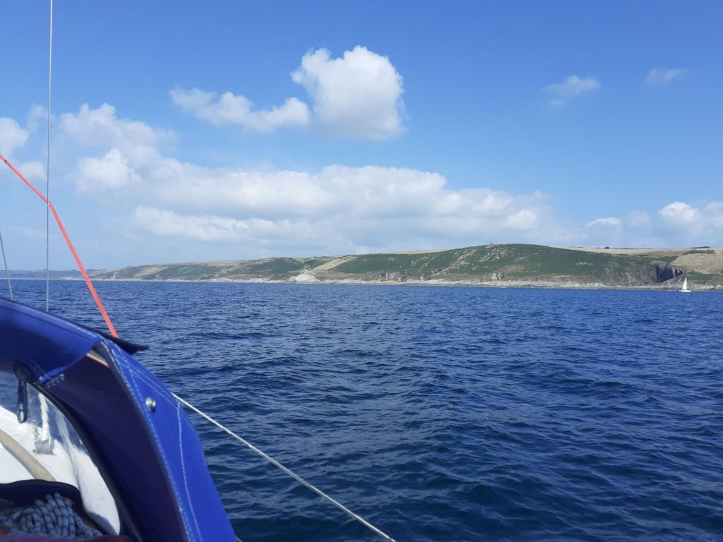 I pulled up the anchor at 0830hrs and Vicki motored Elektra back down River towards the sea, while l cleaned the anchor which had pulled up a lot of weed. By the time l got back to the cockpit Elektra was south as far as the Bag Pontoon. I took over the helm until we were turning west out of Salcombe around Bolt Head. From Bolt Head we started to sail, slowly at first but Elektra picked up speed to 5-6kts as far as Bolt Tail then slower again. The wind died away to almost nothing and we started motoring at 1115hrs having logged 12.5nm. Motoring on l rolled away the genoa and lowered and packed the main. We were moored to the top Pontoon in the Yealm River at 1230 having logged 18.5nm.