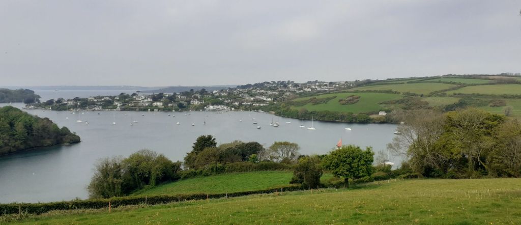 After walking and dinghy ride into the upper Creek, it was time to get back to Elektra for brunch followed by washing up and a bit more lazing in the cockpit over low water. And in the early evening, I pulled up anchor and Vicki motored Elektra back down the river and we set sail back to Gillan. We had something to go back home to on Wednesday but with it still being east wind with more east wind forecast, we needed to moor her in Carne Creek but with the tide going into neaps we wouldn’t be unable to get her in there after Friday this week. We started off out of the Carrick Roads at 4.5kts but Elektra slowed and slowed until she was only logging 2kts in a not very nice eastery swell from the last few days. So about 1/2 mile south of the Roads we started the engine and motored across the bay. We had arrived in Gillan too early, so moored up on St Anthony waiting mooring for the tide to come in some more. 1/2hr later I dropped the mooring and we continued into Carne Creek and moored up. Being late in the evening we stayed aboard overnight and went ashore in the morning having packed up.
