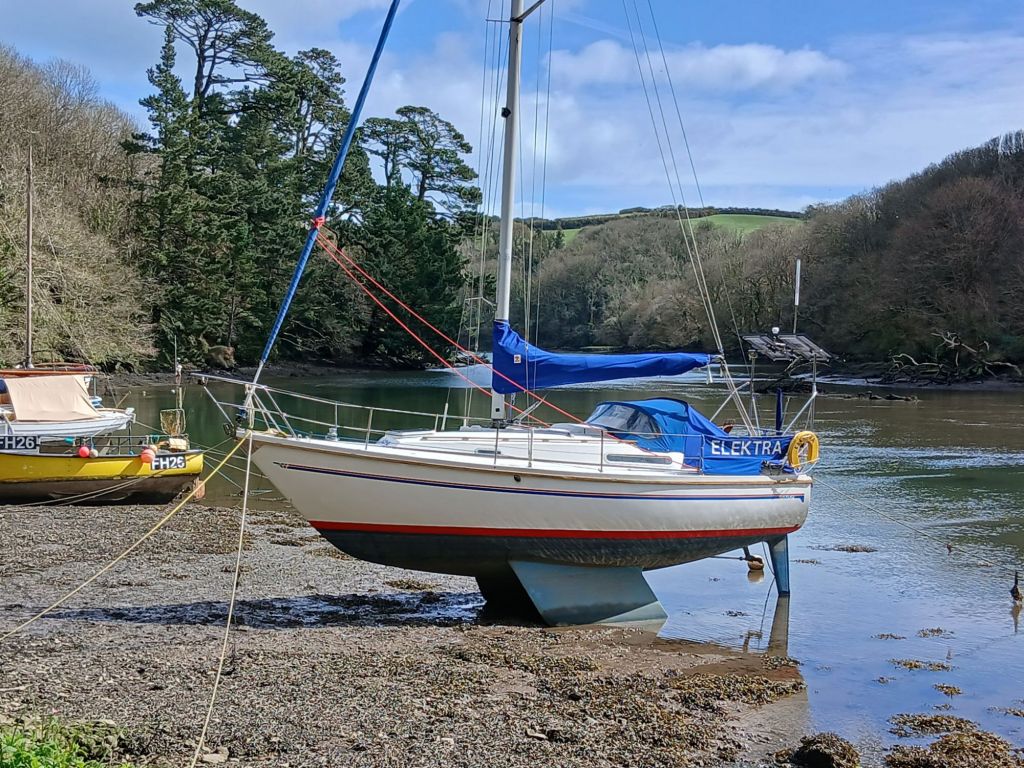 By the 16th of March the weather was looking up and the sun had showed it self, so I spent Monday and Tuesday scrubbing Elektra’s bottom and washing her freeboard and decks. On the Wednesday, I did what I said I wouldn’t ever do again and that was to give her a coat of antifouling on her mud berth (the last time I had done this back in 2018, the mud was 12-18″ deep and it was quite a workout just walking around her in the mud). But this year the mud was almost gone from around her bow area and only 4-6inchs at her rudder, so was a lot easier to do.
