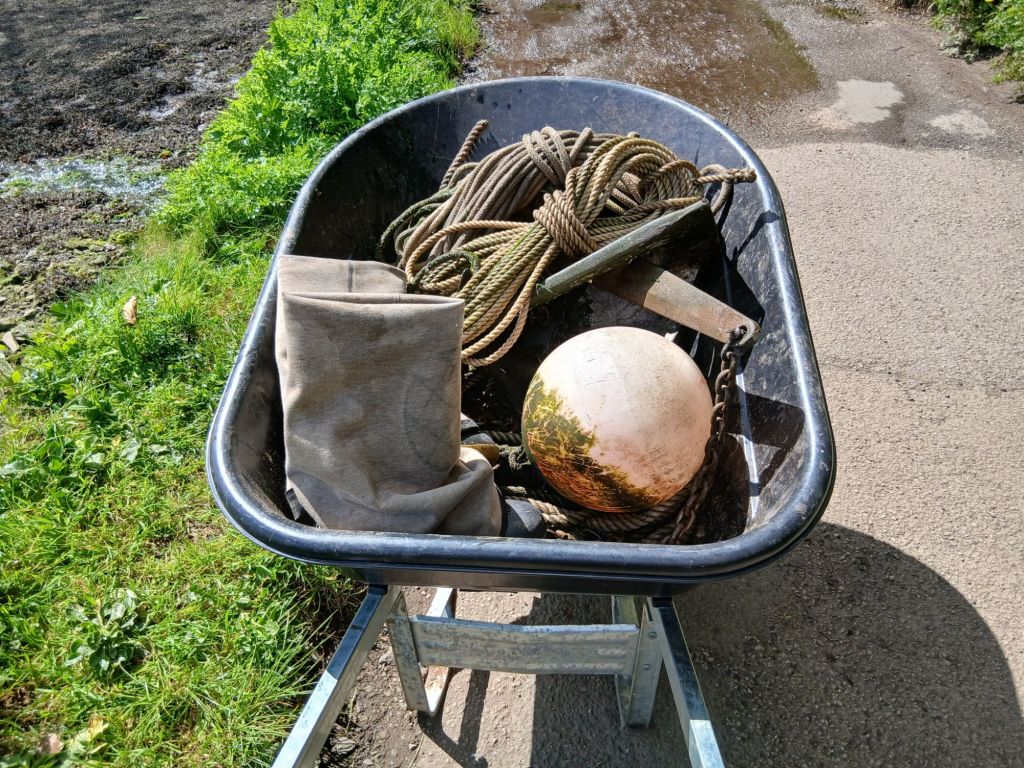 After a coffee l took my wheel barrow (l used to do this with my pickup, but l sold it about 10 days ago) back down to Carne. This time to remove the winter mooring for cleaning and checking before next winter. The joys of a cheap winter mooring is it normally costs time instead of money! About 1.5hrs later l was back home with the 2x 15kg Bruce anchors, 2x anchor chains and 6x lines in the wheel borrow saying, l’m not doing that again! It had been harder than l thought pushing the wheel barrow back loaded.