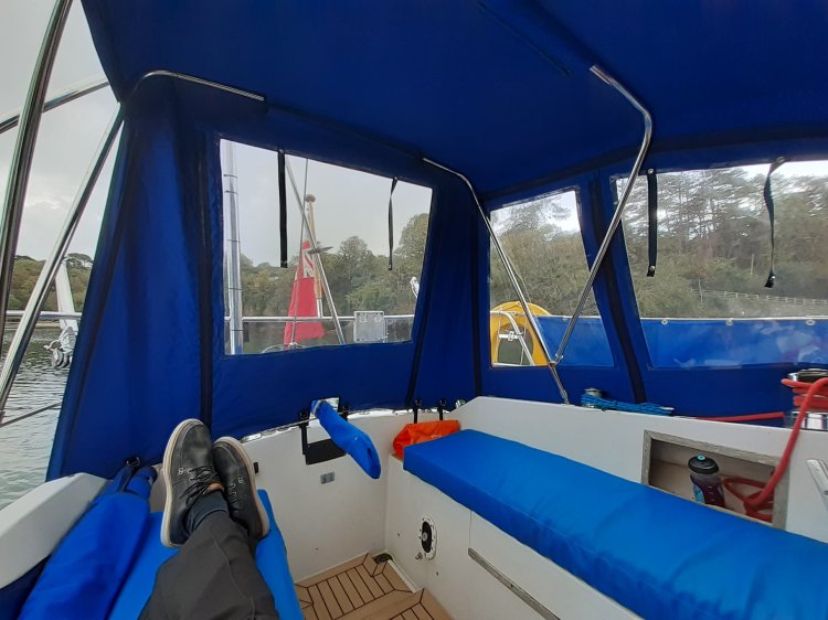 In 2020, new davits, extra 220ah battery bank, the Bukh DV20 replaced with a Yanmar 3YM20 by Yanmar engineer, new sprayhood and cockpit encloser.