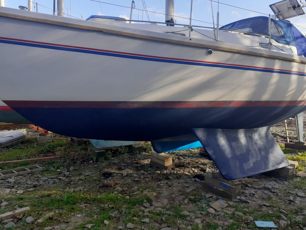 I contacted my sailing friend Robert who owns a Sadler 34 which is ashore in the boat yard next to “Allspars” to ask if he could take a photo of the fishing boat, so I knew what l was dealing with and would he be able to take my lines on arrival. Robert kindly took some photos and suggested it would be a good idea to look first.