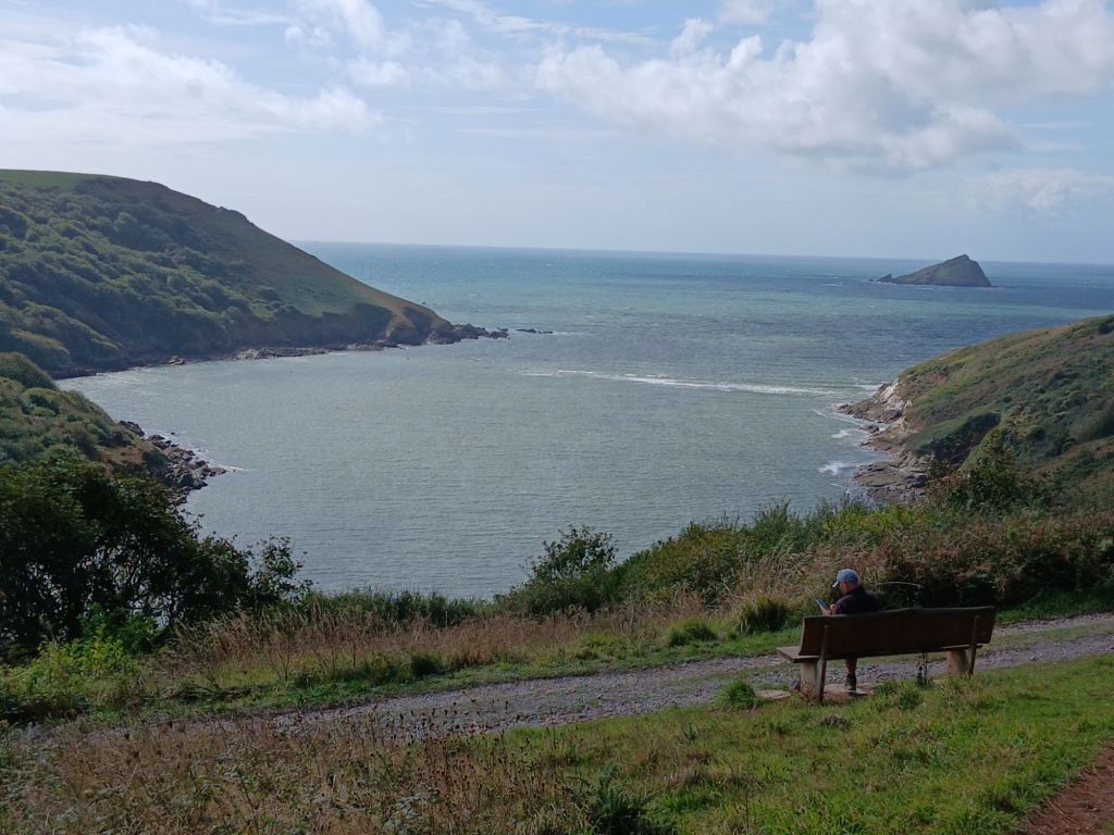 A last little climb up a track away from the cliff path was tough on David, but with a rest or two, he made it, and from there was level or downhill. I stopped walking part way down the path and looked at the weather on my phone app. Vodafone wasn’t a great signal in the Yealm River, l had just changed my provider from EE. Vicki had EE and full service, but Vodafone had no signal at all. I thought great. Here l am away from home with a Cruising Association Rally to finalise in Fowey in just 2 weeks time, and l had no signal!