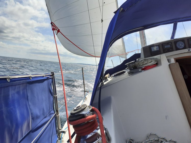 Dropped the mooring at 1445hrs we were sailing away down wind we had only set the genoa but we covered the 6nm in 1.5hrs. We dropped anchor in Place Manor where we would dry out overnight. Far enough to get away but not to far for a hard bash back to windward to get home.
