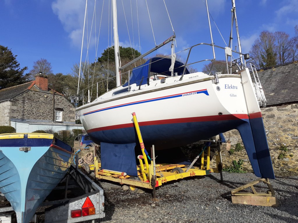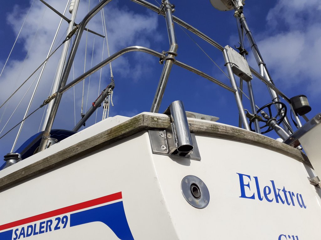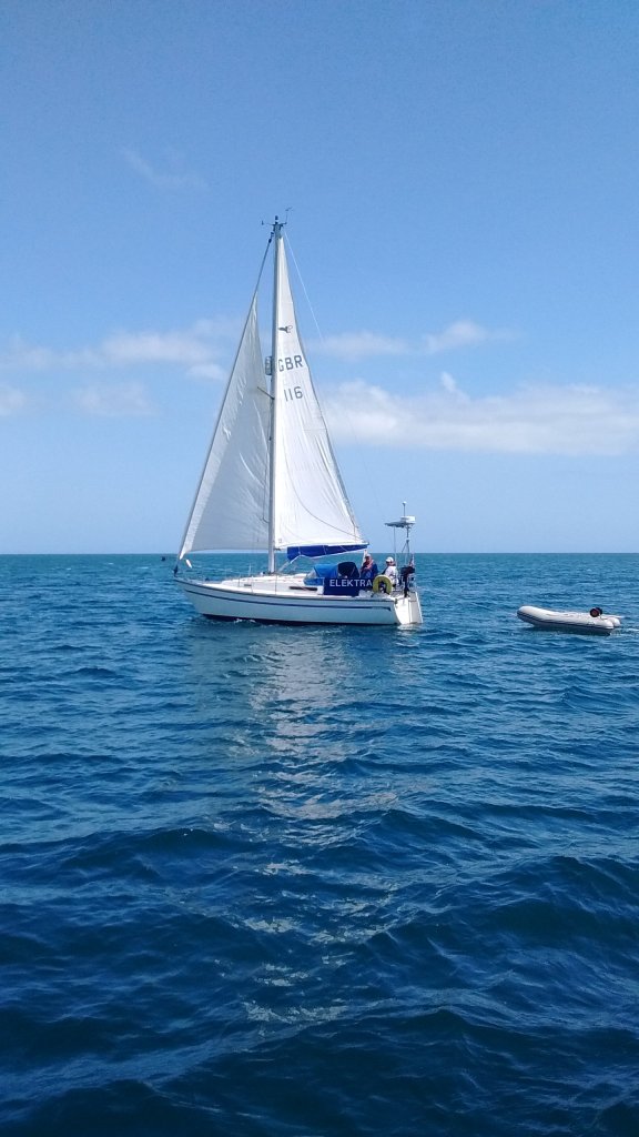 Out at Elektra we transferred the gear and store, while Vicki was stowing it away l got outboard off the punt and onto Elektra’s rail and the punt lifted up on her davits.Then getting Elektra ready to sail before sitting down in the cockpit to eat lunch.