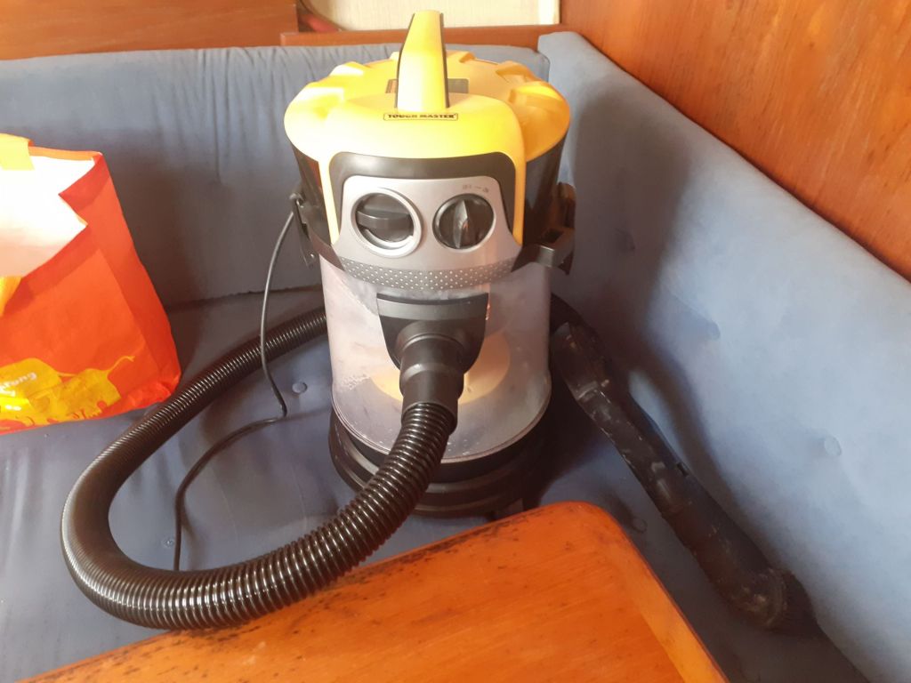 I had used an old vacuum cleaner to clean up most of the powder, this finished the vac and so I ordered a new one online which arrived on Friday On Thursday the boat yard helped me get my petrol generator aboard and on Friday they moved Elektra out onto her seasonal mooring. On Saturday I cut our grass which I hadn’t cut for over 4 weeks and on Sunday I took the new vacuum cleaner out to Elektra and hovered out everywhere I could get too.